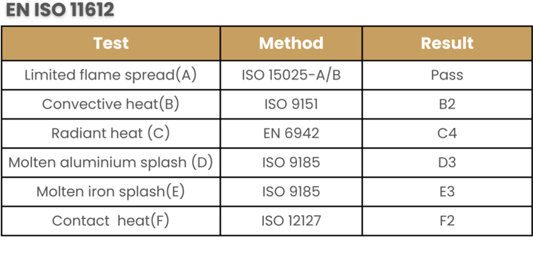 Meet the requirement of EN 11612:2015: