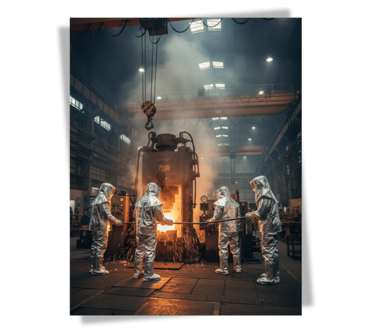 Our specialized heat-resistant suits utilize advanced aluminized materials and multi-layer thermal barriers to provide maximum protection against radiant heat and molten metal splashes in high-temperature environments
