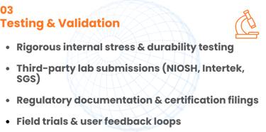Bringing a new PPE product to market requires technical precision and regulatory expertise. We follow a rigorous four-stage framework to ensure your products are market-ready.