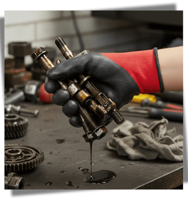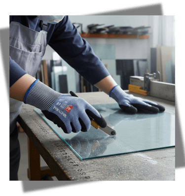 Latex: Delivers the best dry grip and elasticity. Often used in construction (Crinkle Latex) for handling masonry or glass. It’s highly tear-resistant but degrades quickly in oil and can trigger allergies.